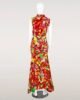 Introducing our captivating “Maroon and Yellow Multi-Color Katan Silk and Paper Silk Maxi Dress.” This exquisite dress is designed to make a statement and turn heads at any semi-formal or evening event.