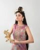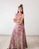 Make a grand entrance and let your style shine with the “Silver and Magenta KatanSilk and PaperSilk Maxi Dress.” Perfect for semi-formal events and party wear, this dress will ensure all eyes are on you.