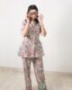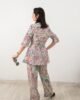 Whether you’re attending a party or a special event, our “Pastel Green and Purple Multi-Color Blazer Style Top with Pants” will make a statement. Embrace the contemporary fashion and wearable art with this exquisite piece that reflects your individuality and sense of style.